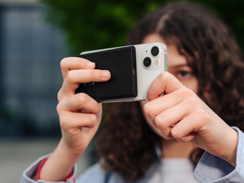 Επιπλέον, έχει τη δυνατότητα ασύρματης φόρτισης, ιδανική για συσκευές που υποστηρίζουν αυτή τη λειτουργία. Με την τεχνολογία MagSafe, μπορείς να τοποθετήσεις το power bank μαγνητικά πίσω από το iPhone 12 ή νεότερα μοντέλα και να το φορτίσεις χωρίς καλώδια, κάνοντάς το πολύ πρακτικό για καθημερινή χρήση.