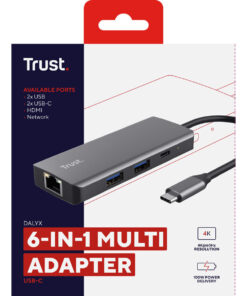 Αυτός ο προσαρμογέας αλουμινίου πολλαπλών θυρών σάς επιτρέπει να προσαρμόσετε εύκολα έξι νέες θύρες, συμπεριλαμβανομένων HDMI, δικτύου, 2x USB-C και 2x USB, στον φορητό υπολογιστή σας ή στο PC σας.