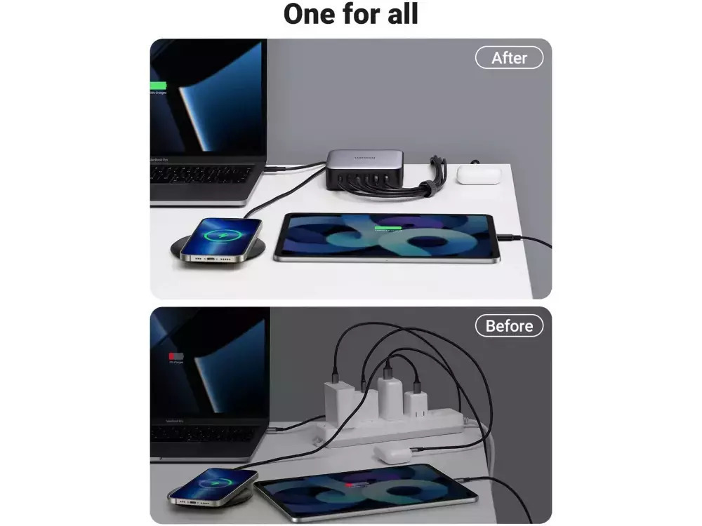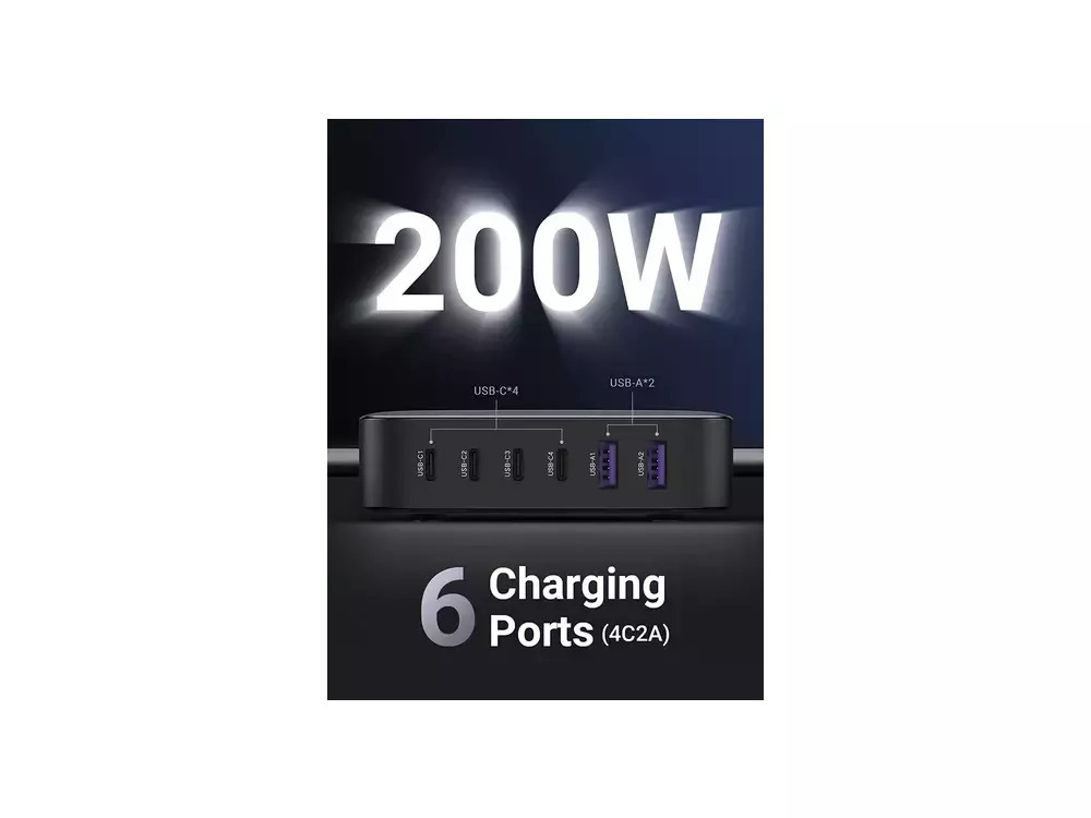 - Φόρτιση 6 συσκευών ταυτόχρονα: Υποστηρίζει μέγιστη συνολική απόδοση 200 W, αυτός ο φορτιστής USB C 6 θυρών όχι μόνο σας επιτρέπει να φορτίζετε 6 συσκευές ταυτόχρονα αλλά και να διατηρείτε την επιφάνεια εργασίας σας τακτοποιημένη.