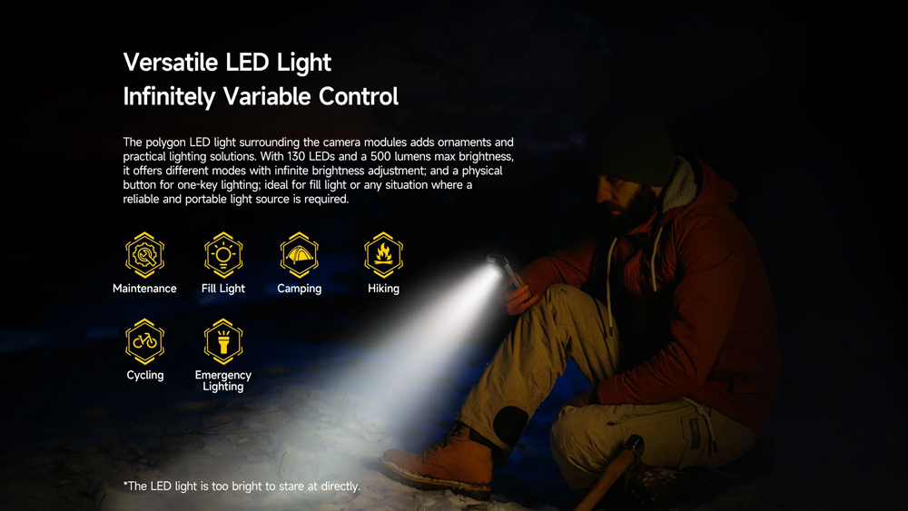 Ο ενσωματωμένος LED φακός 5W με 500 lumens είναι ιδανικός για φωτισμό μεγαλύτερων περιοχών. Η μπαταρία των 6200mAh προσφέρει μεγάλη αυτονομία και υποστηρίζει ταχεία φόρτιση 33W και ασύρματη φόρτιση 15W.