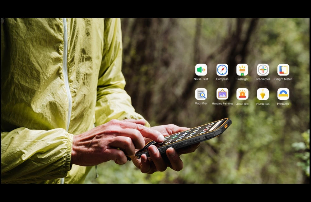 Τα προεγκατεστημένα ψηφιακά εργαλεία στο Armor X13 βοηθούν πολύ για δραστηριότητες σε εσωτερικούς και εξωτερικούς χώρους. Η πυξίδα πλοηγεί προς τη σωστή κατεύθυνση όταν δεν υπάρχουν σαφή ορόσημα ή σήματα GPS. Η κρεμάστρα ζωγραφικής μπορεί να σας βοηθήσει για την ανάρτηση ενός πίνακα ή για άλλες οικιακές βελτιώσεις.