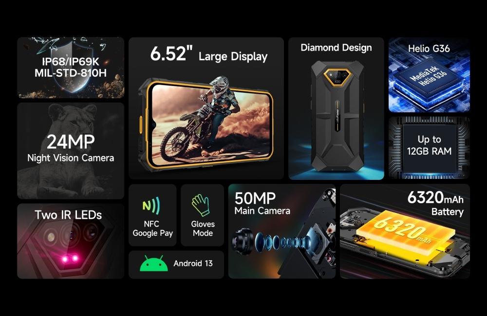 Το Armor X13 κινείται με τον οκταπύρηνο επεξεργαστή MediaTek Helio G36, με κύρια συχνότητα 2,2 GHz. Ο βασιλιάς των επιδόσεων της σειράς Armor X προσφέρει ταχύτερη και ομαλότερη εμπειρία σε πολλαπλές εργασίες, παιχνίδια κ.λπ.