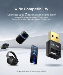 Ο Adapter Bluetooth B105B διαθέτει μεγάλο εύρος λειτουργίας και μπορεί να υποστηρίξει σύνδεση έως και 7 διαφορετικών συσκευών, όπως ποντίκια, πληκτρολόγια και ηχεία. Οι συσκευές θα πρέπει να είναι διαφορετικών τύπων ώστε οι σήματα να μην συγκρούονται.
