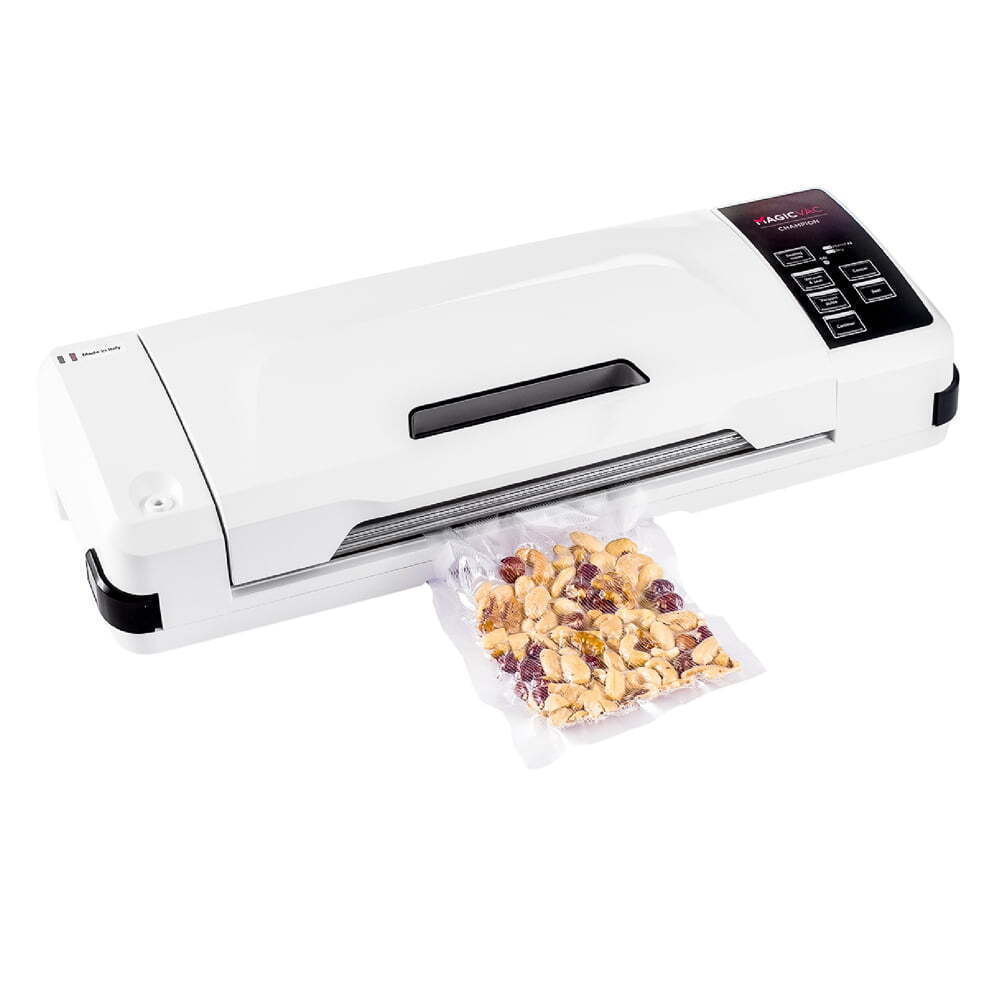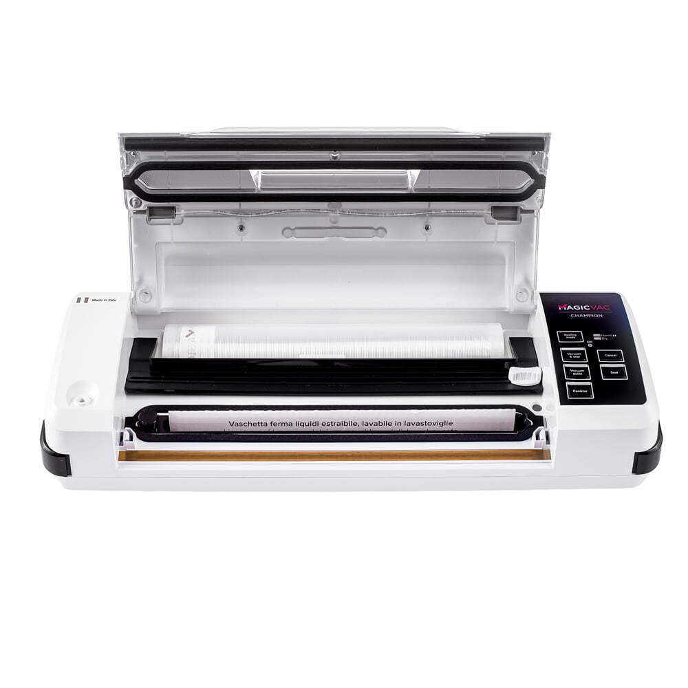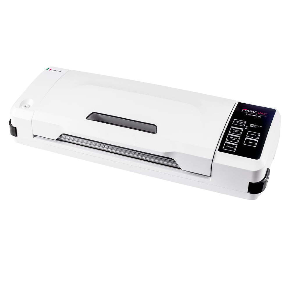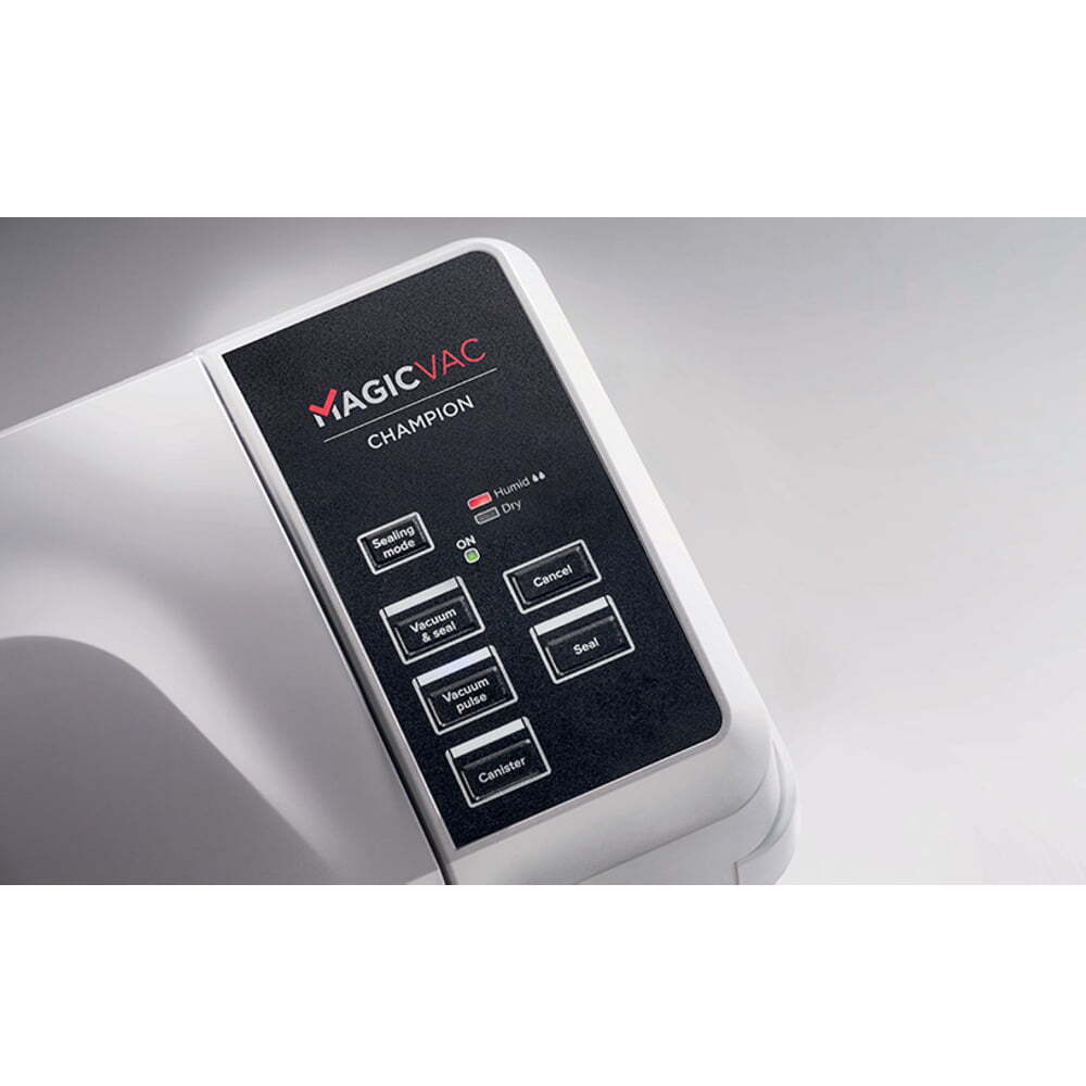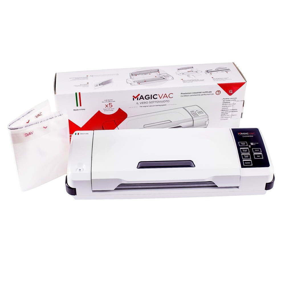 Η σφραγιστική συσκευή Champion από την Magic Vac διατηρεί τα τρόφιμα φρέσκα έως 5 φορές περισσότερο σε σύγκριση με τις παραδοσιακές μεθόδους συντήρησης, χάρη στην πατενταρισμένη τεχνολογία υψηλής ποιότητας. Διαθέτει πρακτικό παράθυρο που σας επιτρέπει να βλέπετε τις σακούλες και να τις τοποθετείτε σωστά στην μπάρα σφραγίσματος.