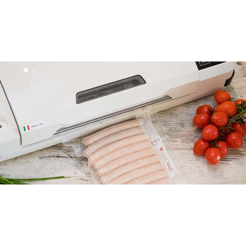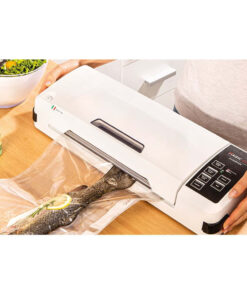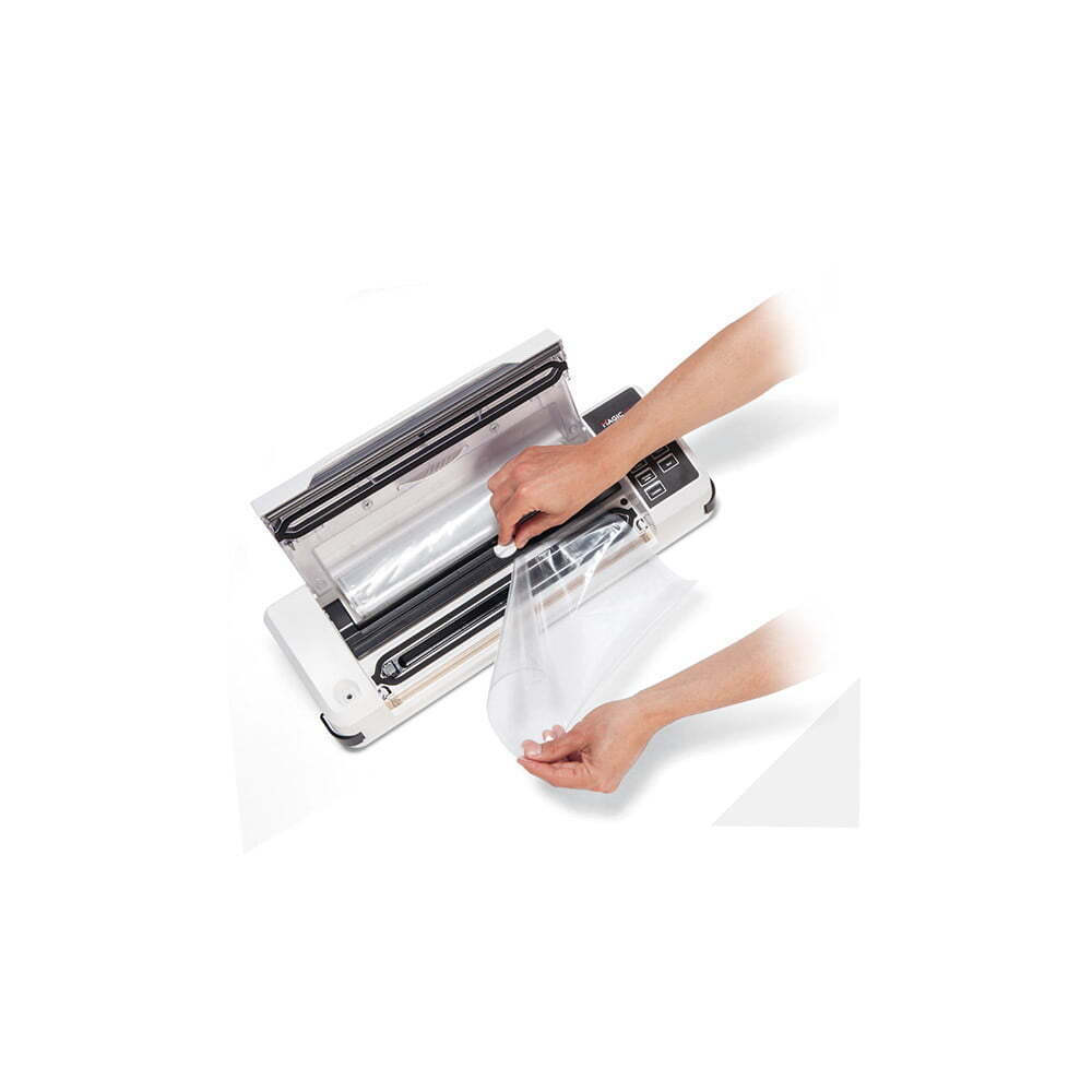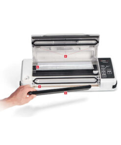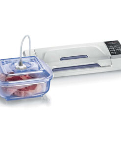 Διαθέτει λειτουργία χειροκίνητης σφράγισης και ρυθμιζόμενο χρόνο σφράγισης. Επιπλέον, η δίσκος συλλογής υγρών είναι ανθεκτικός σε υγρά, πλήρως αποσπώμενος και μπορεί να πλυθεί σε πλυντήριο πιάτων. Η πλήρως αποσπώμενη βάση της συσκευής εξασφαλίζει μέγιστες συνθήκες υγιεινής και τέλεια καθαριότητα.