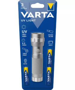 Φακός χειρός LED της Varta, κατάλληλος για χρήση σε δραστηριότητες όπως κατασκήνωση, πεζοπορία, ποδηλασία, κυνήγι, ψάρεμα ή κατά διάρκεια των εργασιών όπως επισκευή στο σπίτι. Λειτουργεί με 3 μπαταρίες AAA (περιλαμβάνονται) και τροφοδοτείται με ηλιακή ενέργεια, που το καθιστά κατάλληλο για υπαίθριες δραστηριότητες. Διαθέτει βοηθητικό υπεριώδες (UV) για εξακρίβωση αυθεντικότητας (π.χ. χρημάτων, ταυτοτήτων, διαβατηρίων, σημάτων γνησιότητας κ.α.) και την ενεργοποίηση φθοριζόντων υλικών. Εύκολος στη χρήση, καθώς έχει ελαφριά κατασκευή που ζυγίζει 87gr και έχει μήκος 11.8cm.