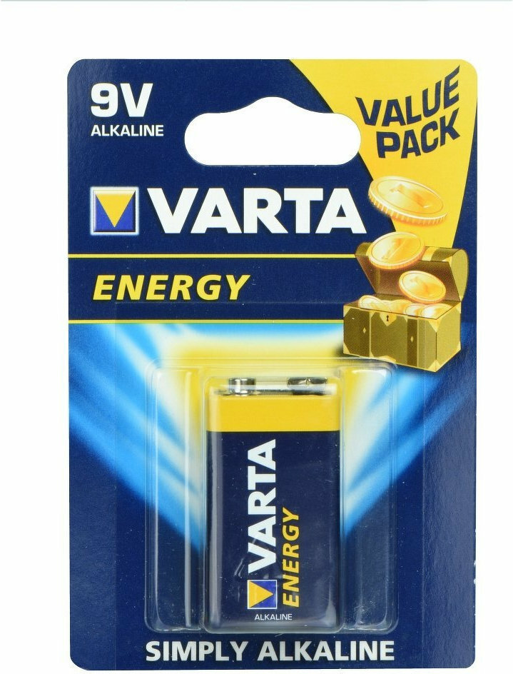 Αλκαλικές μπαταρίες της Varta μεγέθους 9V, ιδανικές για φακούς κι άλλες οικιακές μικροσυσκευές.