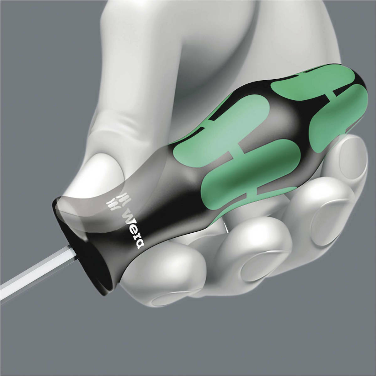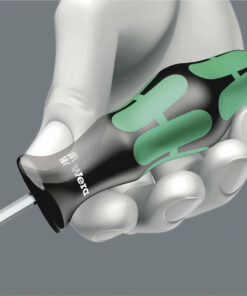 Η λαβή Kraftform πολλαπλών συστατικών επιτρέπει γρήγορη και άνετη εργασία. Τα σκληρά στοιχεία του υλικού της λαβής επιτρέπουν τη γρήγορη περιστροφή χωρίς τον κίνδυνο να «κολλήσει» το χέρι σας στη λαβή. Μεγάλες σκληρές πλαστικές ζώνες που βρίσκονται γύρω από τη λαβή γλιστρούν εύκολα πάνω από το δέρμα του χεριού. Η σήμανση στη λαβή με τη μορφή του τύπου υποδοχής και του μεγέθους της μύτης διευκολύνει την εύρεση του κατσαβιδιού σε μια τσάντα εργαλείων ή στο χώρο εργασίας. Το εξαγωνικό κολάρο εμποδίζει το εργαλείο να κυλήσει μακριά από το χώρο εργασίας.