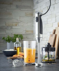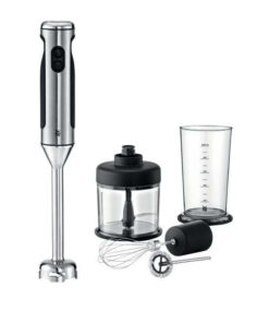 Ραβδομπλέντερ WMF Lineo 4w1, που συνδυάζει τη λειτουργικότητα με τον σύγχρονο σχεδιασμό. Προορίζεται για πολλές εργασίες με δυνατότητες ανάμειξης, μίξης, κοπής, χτυπήματος και αφρού γάλακτος. Διαθέτει χωρητικότητα δεξαμενής 0,6 l ή 1 l για την εκτέλεση μεγαλύτερων ποσοτήτων υλικών. Στη συσκευασία περιλαμβάνονται αξεσουάρ όπως: