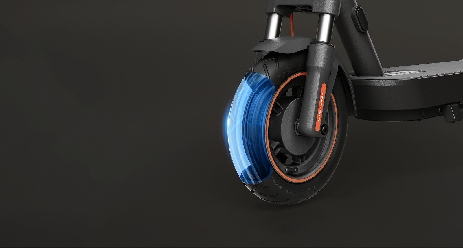 Τα μεγάλα ελαστικά 10″ χωρίς σαμπρέλα έχουν πλάτος 60 χιλ. Είναι προσεκτικά σχεδιασμένα για να απορροφούν τους κραδασμούς και να βελτιώνουν την πρόσφυση στις στροφές, μεγιστοποιώντας τη σταθερότητα και την ασφάλεια κατά την οδήγηση.